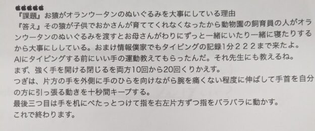 小学2年生の時事問題の提出